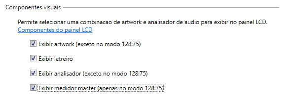 A configuração Componentes Visuais controla quais elementos aparecem no painel LCD principal do WAVESampler.