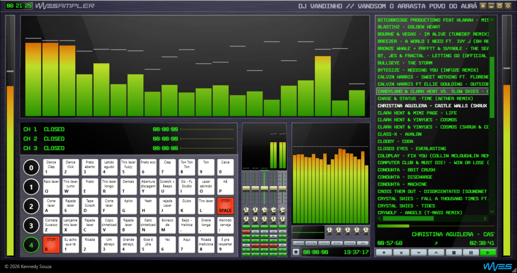 Ao combinar artwork, analisador, letreiro e medidor, é possível adaptar o display para diferentes cenários — desde monitoramento técnico do áudio até apresentações visuais mais expressivas em palco.