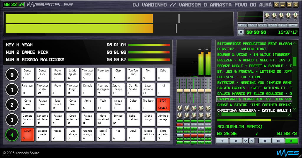 A combinação desses elementos define como o painel LCD será apresentado durante o uso do sampler.